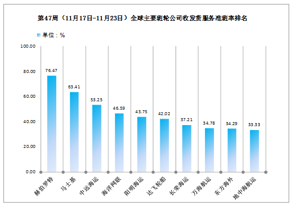 ⇲ 班轮公司:赫伯罗特和马士基班轮准班率排名分列第一和第二。