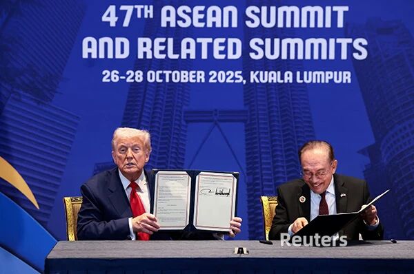 2025年10月26日,马来西亚总理安瓦尔与美国总统特朗普签署《马美对等贸易协议》。