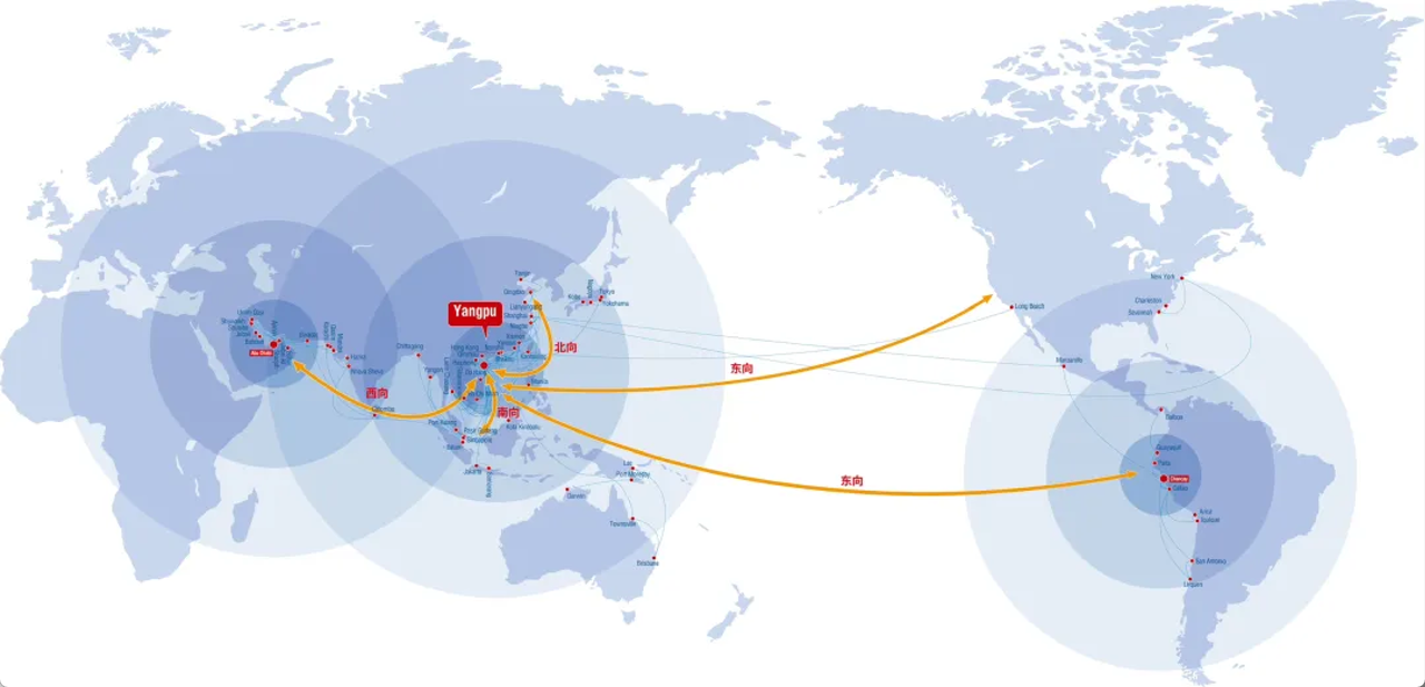 · 美国东西海岸直达服务。依托美西SEA和美东AWE4两条主干航线,实现洋浦至美国长滩、纽约、萨瓦纳等门户港口的直航,构筑以洋浦为枢纽对接北美市场的快速通道;
