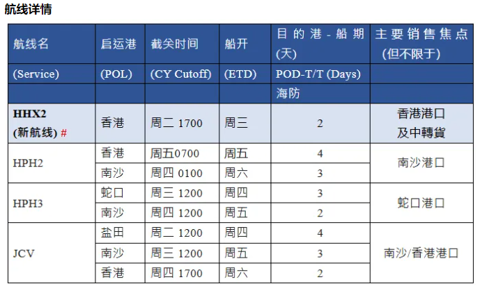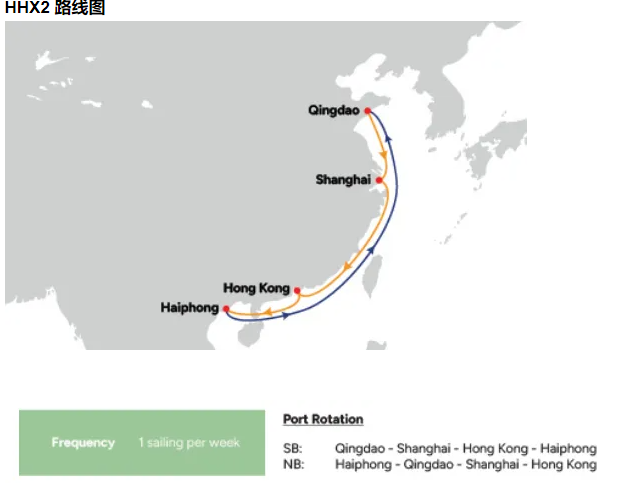 为了继续拓展香港及华南地区至越南市场,OOCL将推出一条往返香港与海防的新航线HHX2。连同现有的3条航线HPH2/ HPH3及JCV,航线将覆盖香港、华南、海防主要港口,为客户提供更全面的服务。