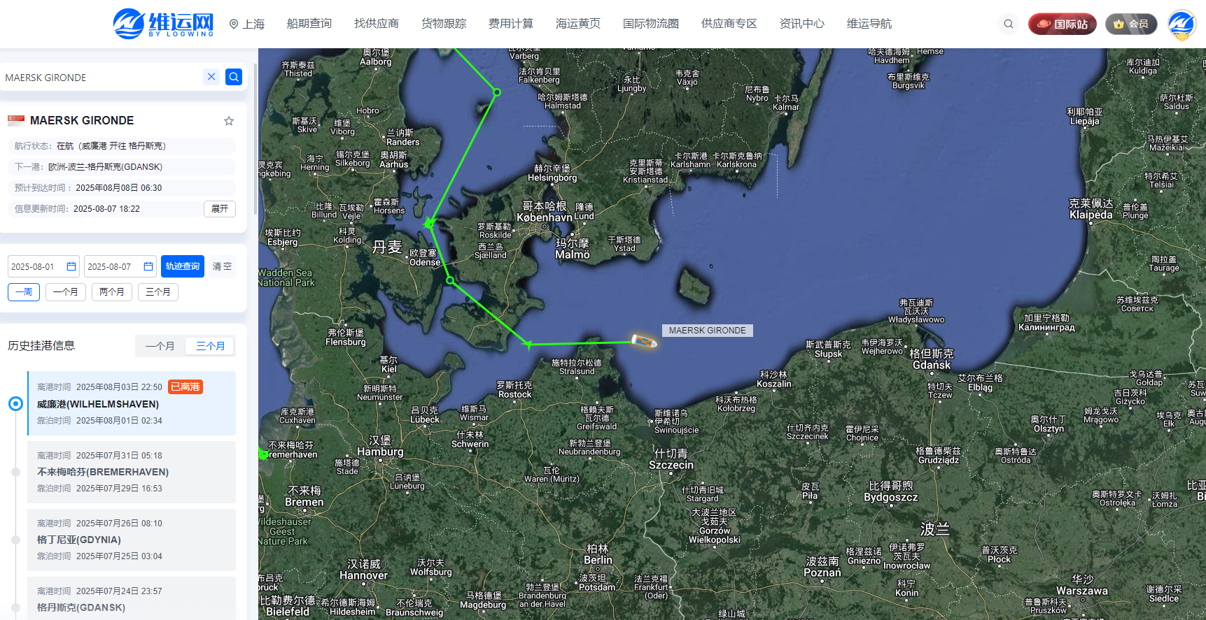 事故发生时,“Maersk Gironde”轮正从德国威廉港驶往波兰的格丹斯克。尽管发生了碰撞,两艘船仍在航行。