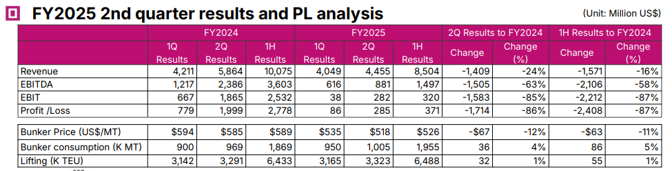 海洋网联船务(ONE)日前公布了2025财年第二季度(2025年7月至2025年9月)业绩报告。