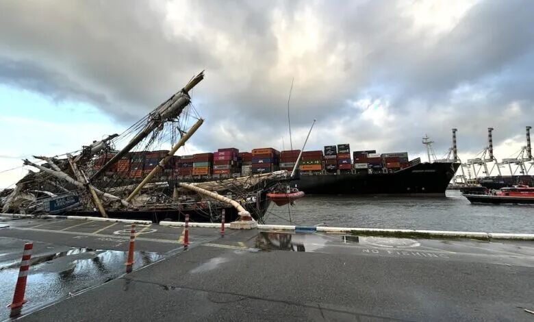 “马士基蛇口” 号最终径直驶向维多利亚码头(Victoria Quay),先是撞上 “利文二号”,致使其桅杆断裂,随后船尾撞击码头,集装箱还砸中了西澳大利亚海事博物馆(WA Maritime Museum)的屋顶。