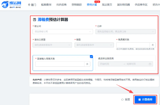 现在打开维运网,点击「滞箱费计算器」就能用!报价前算清成本,谈单时腰杆更硬,把滞箱费牢牢控在预算里~