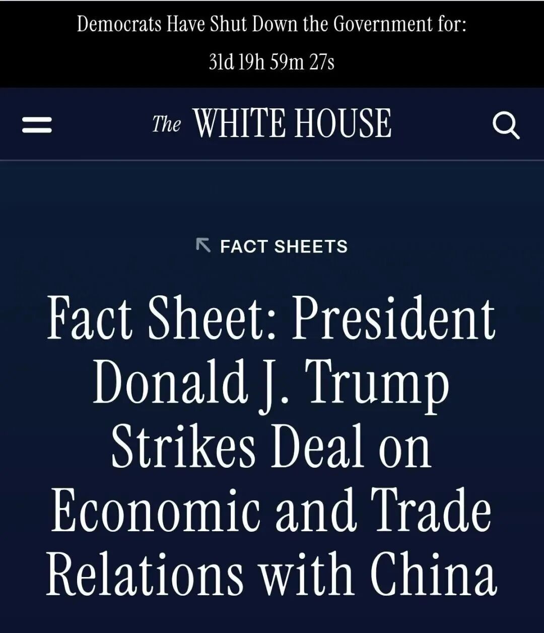当地时间2025年11月1日,美国白宫官网正式发布与中方经贸关系达成的协议文本。