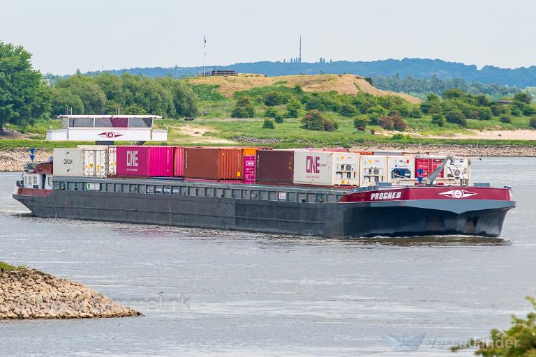 涉事船舶为135米长自航驳船“Progres”号,事发时正执行跨境集装箱运输任务,从荷兰鹿特丹港出发,目的地为德国卡尔斯鲁厄。